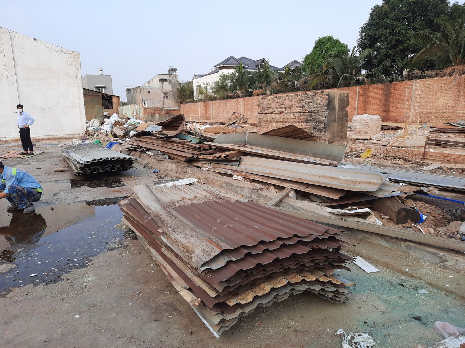 Chúng tôi không chỉ thu mua sắt. Sau khi lấy hết phế liệu, đội ngũ sẽ dọn dẹp xà bần, thu gom rác thải công nghiệp, trả lại cho khách hàng một mặt bằng bằng phẳng, sạch sẽ để sẵn sàng khởi công công trình mới.